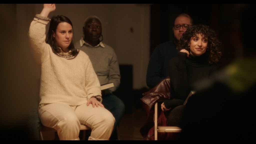 Olivia: I think that showing what a meeting is like was always important to me. Folks get AA meetings wrong in films and tv like 98% of the time. I am not saying we nailed it or anything, but I think we did a lovely job of depicting some of what can happen at an AA meeting. And, to Erica’s point, it is a great setting for a short. You can create a sense of community and then claustrophobia all within a few minutes. It’s a rich space.